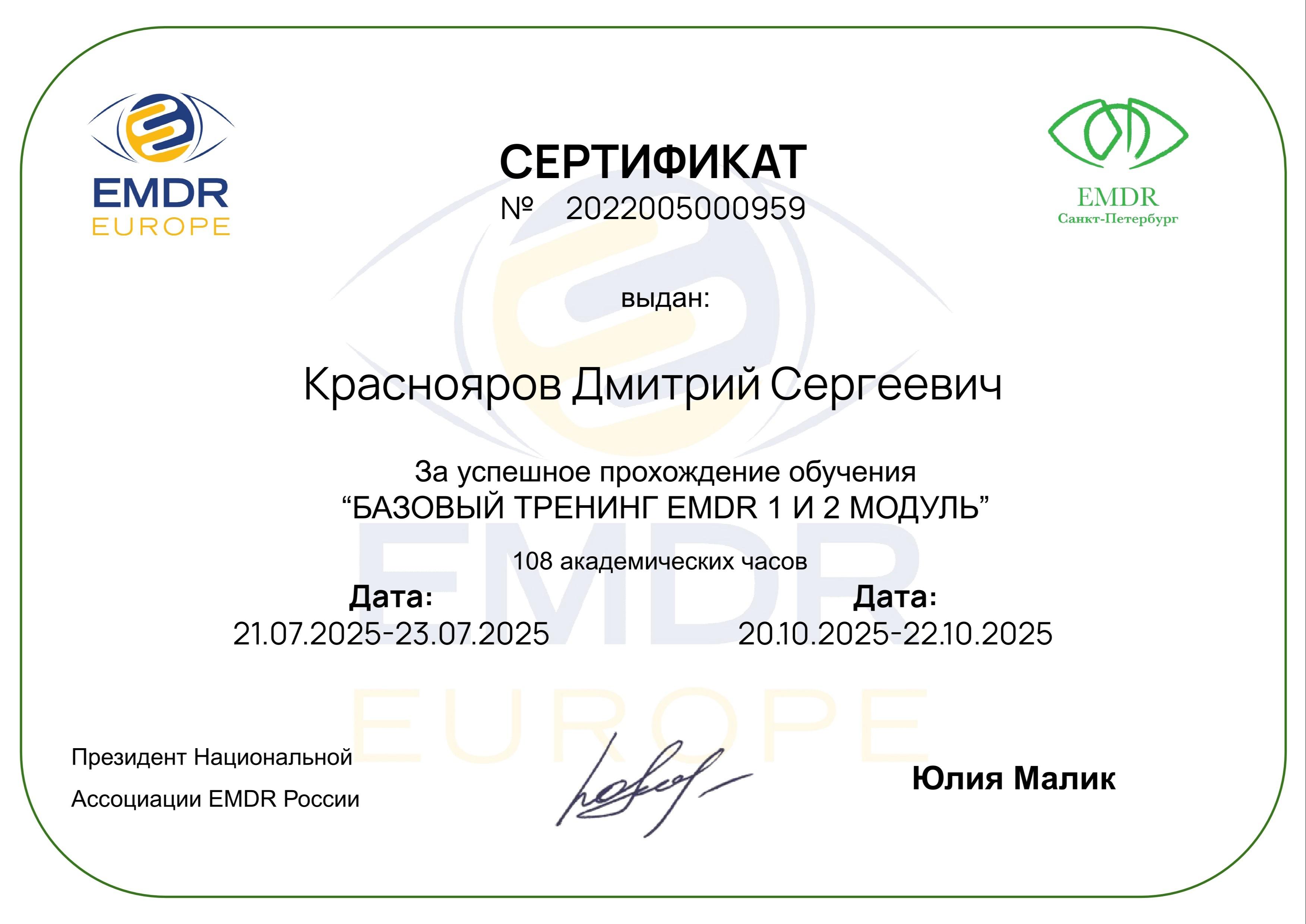 Являюсь членом Общероссийской профессиональной психотерапевтической лиги и Ассоциации EMDR России.